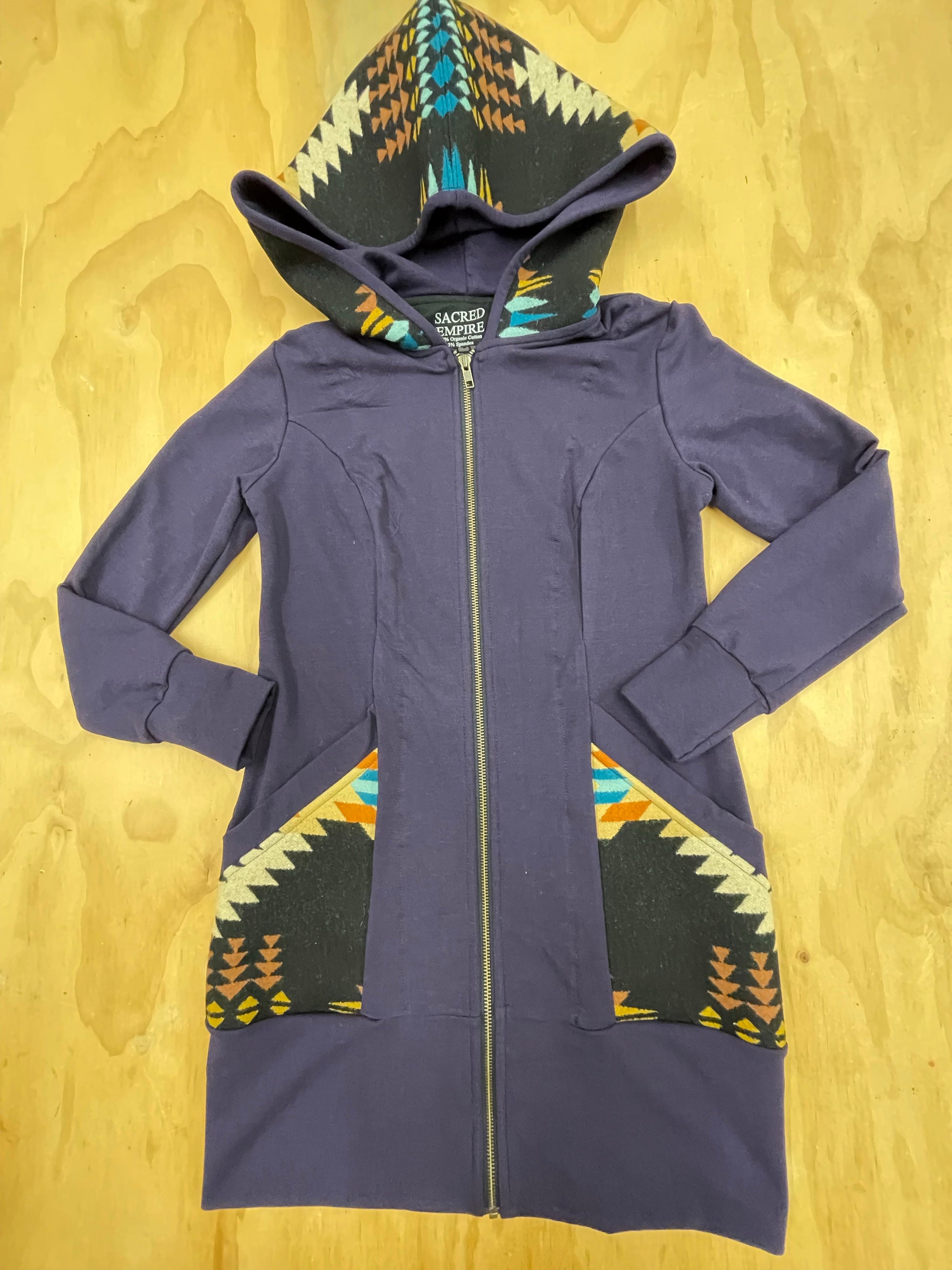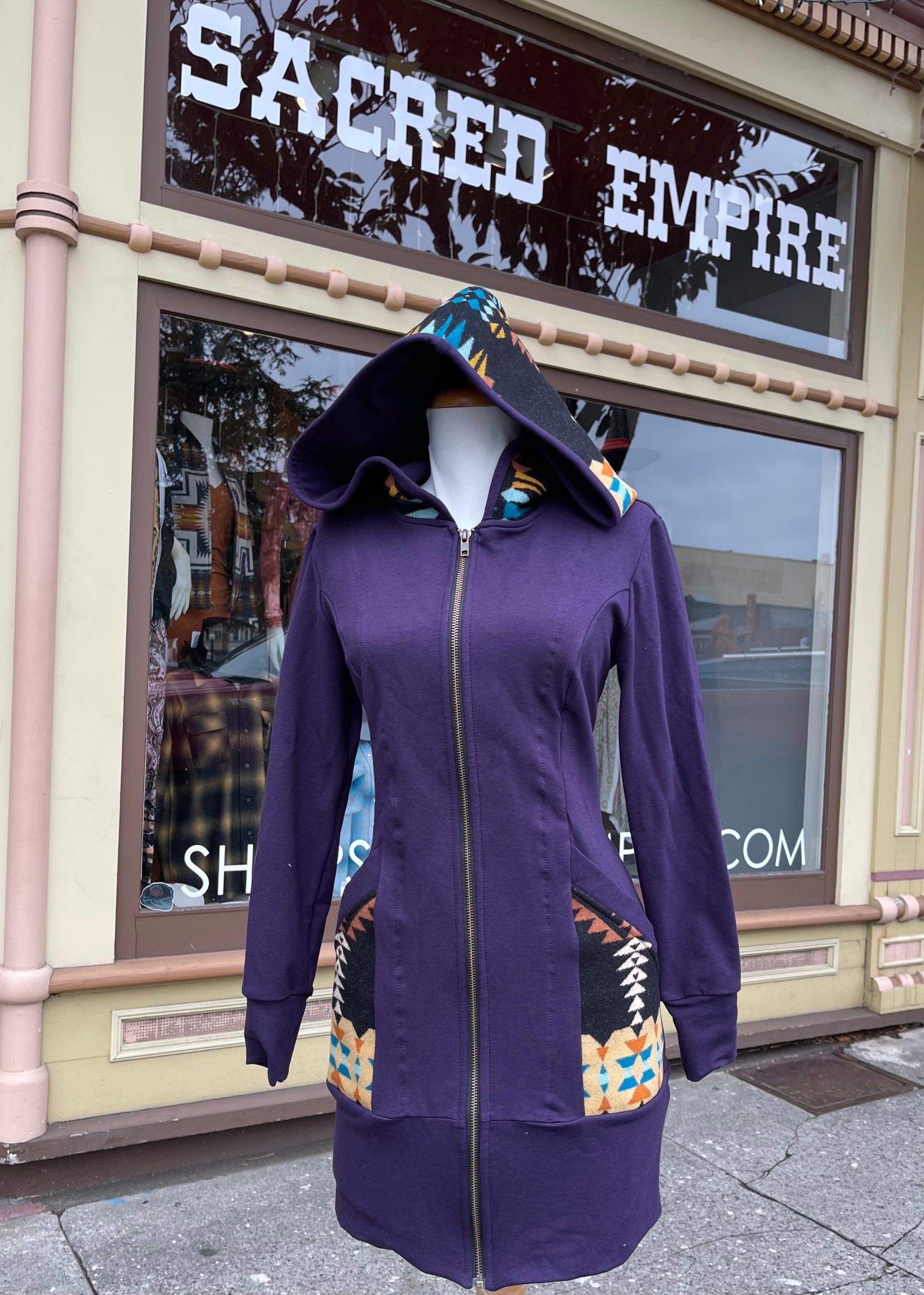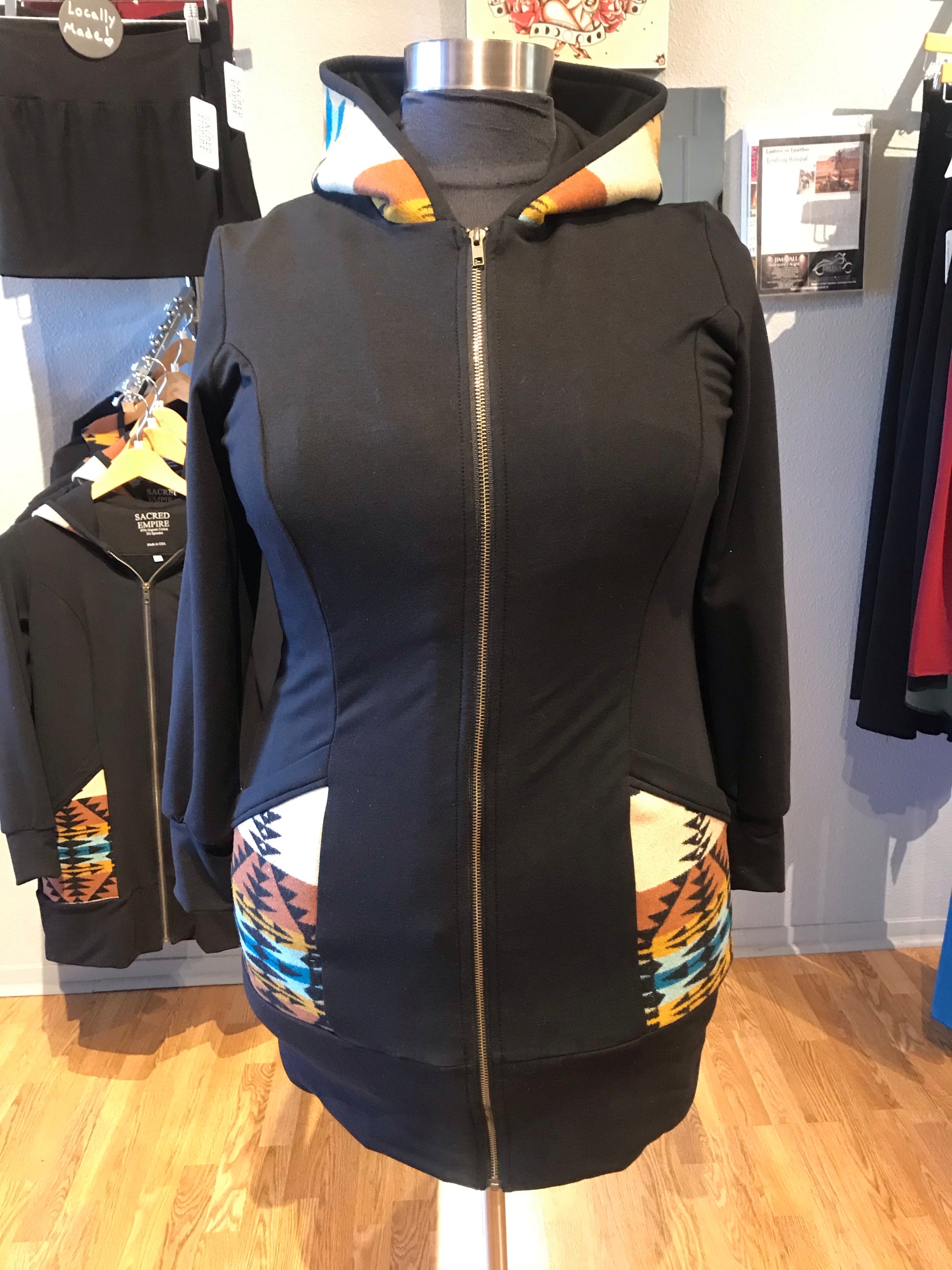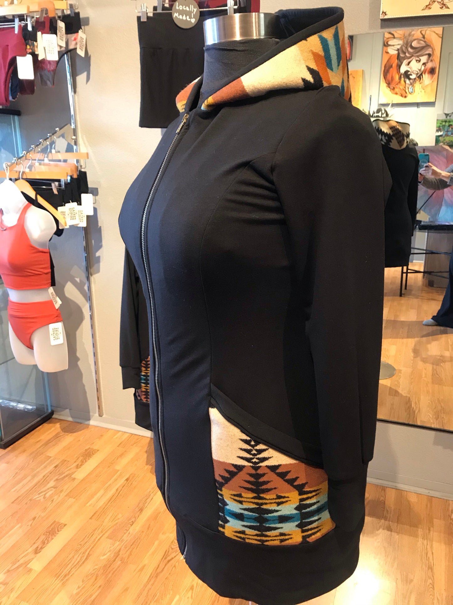 Zip Up Hoodie Dress, locally made from Pendleton Wool and Organic Cotton