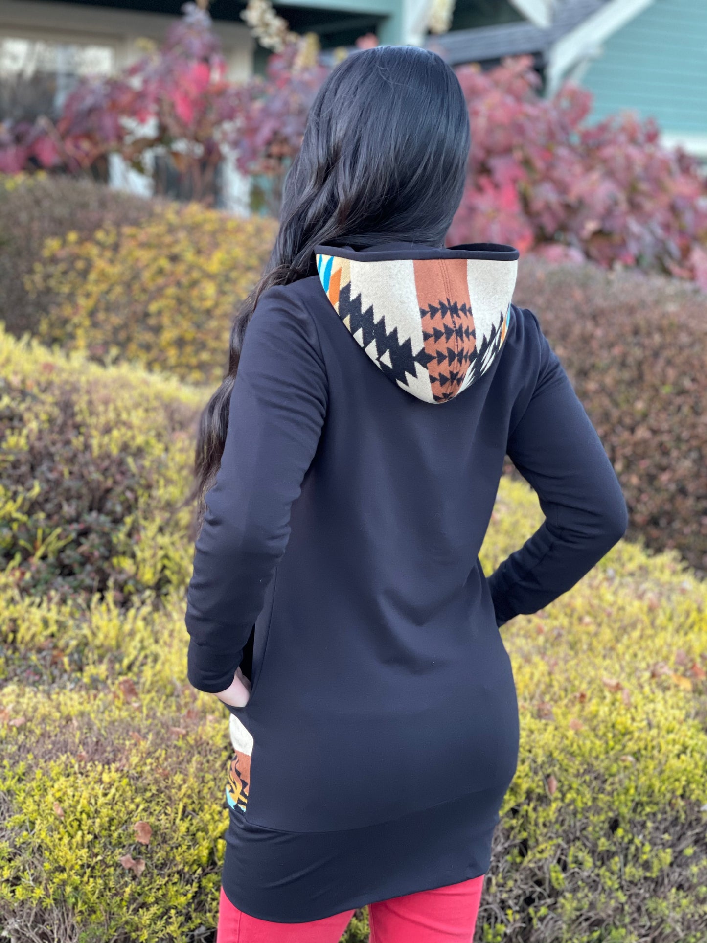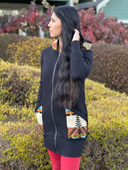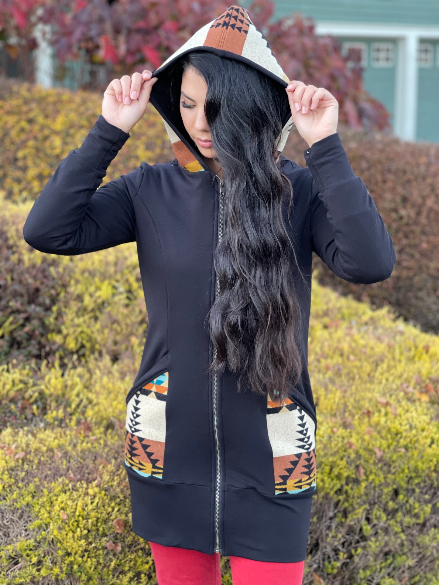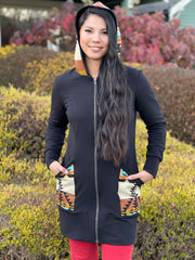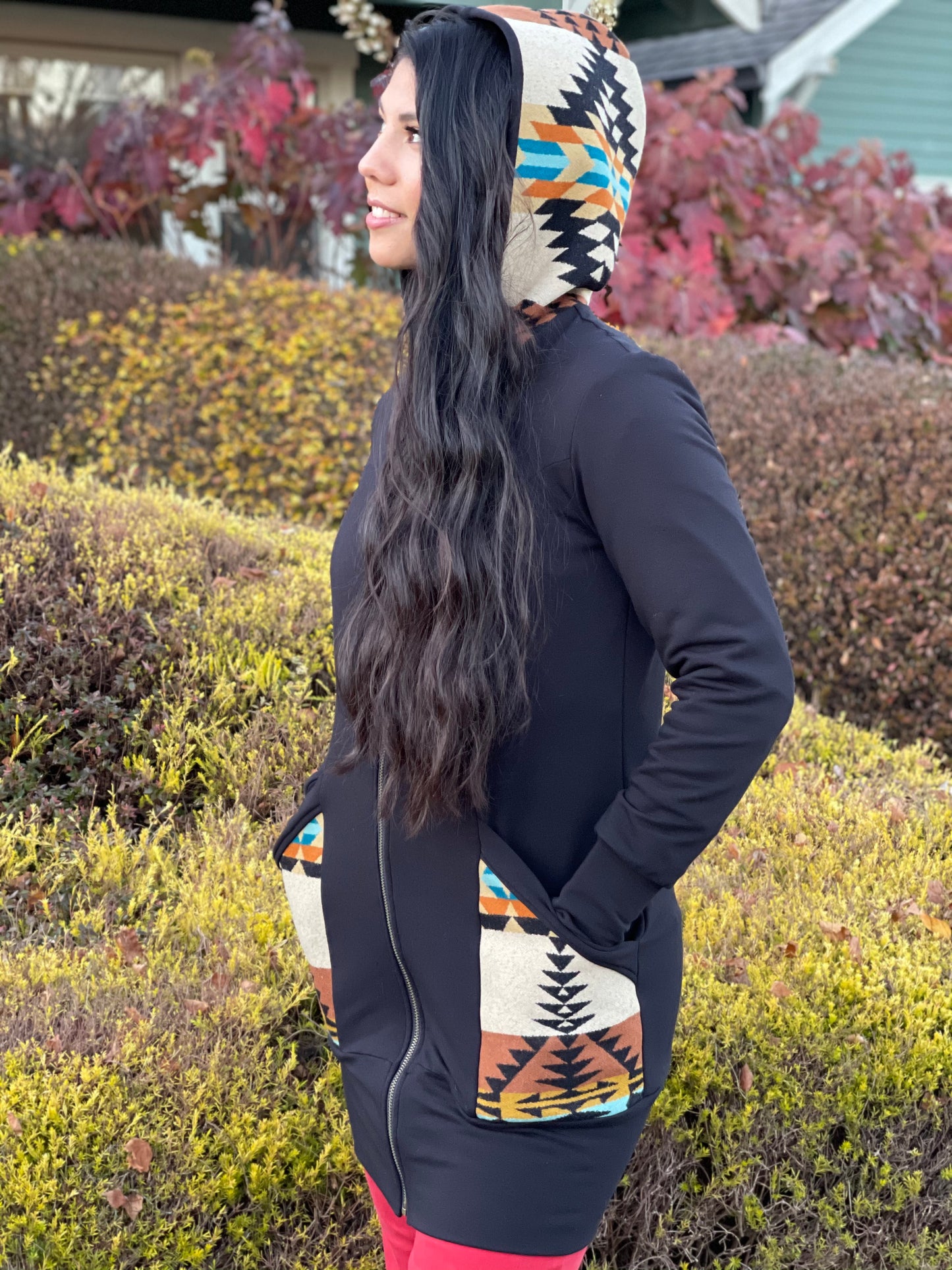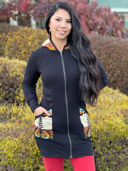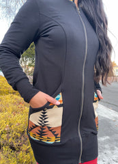 Zip Up Hoodie Dress, locally made from Pendleton Wool and Organic Cotton
