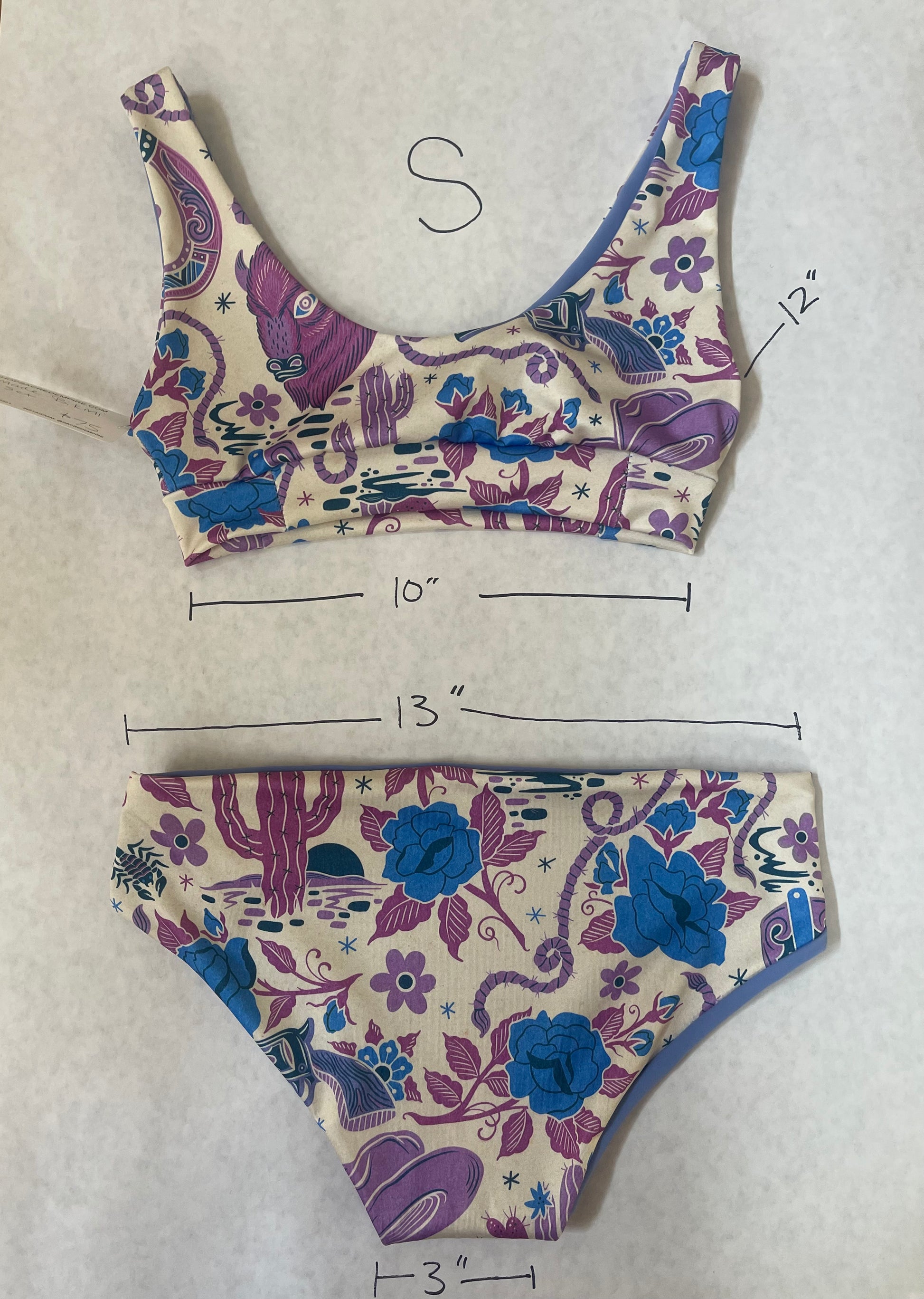 My handmade swimmies are the most flattering swimsuits you’ll ever wear. Fully lined, made from stretch Lycra that hugs your curves without cutting into your skin, giving a smooth, flawless fit. The cut offers coverage, but not tooo much. I’ve perfected the fit on these after years of research making swimwear and sports wear, and girl, trust me. You’ll feel amazing in these. All printed bottoms are reversible too, giving you 2 styles for the price of one.
