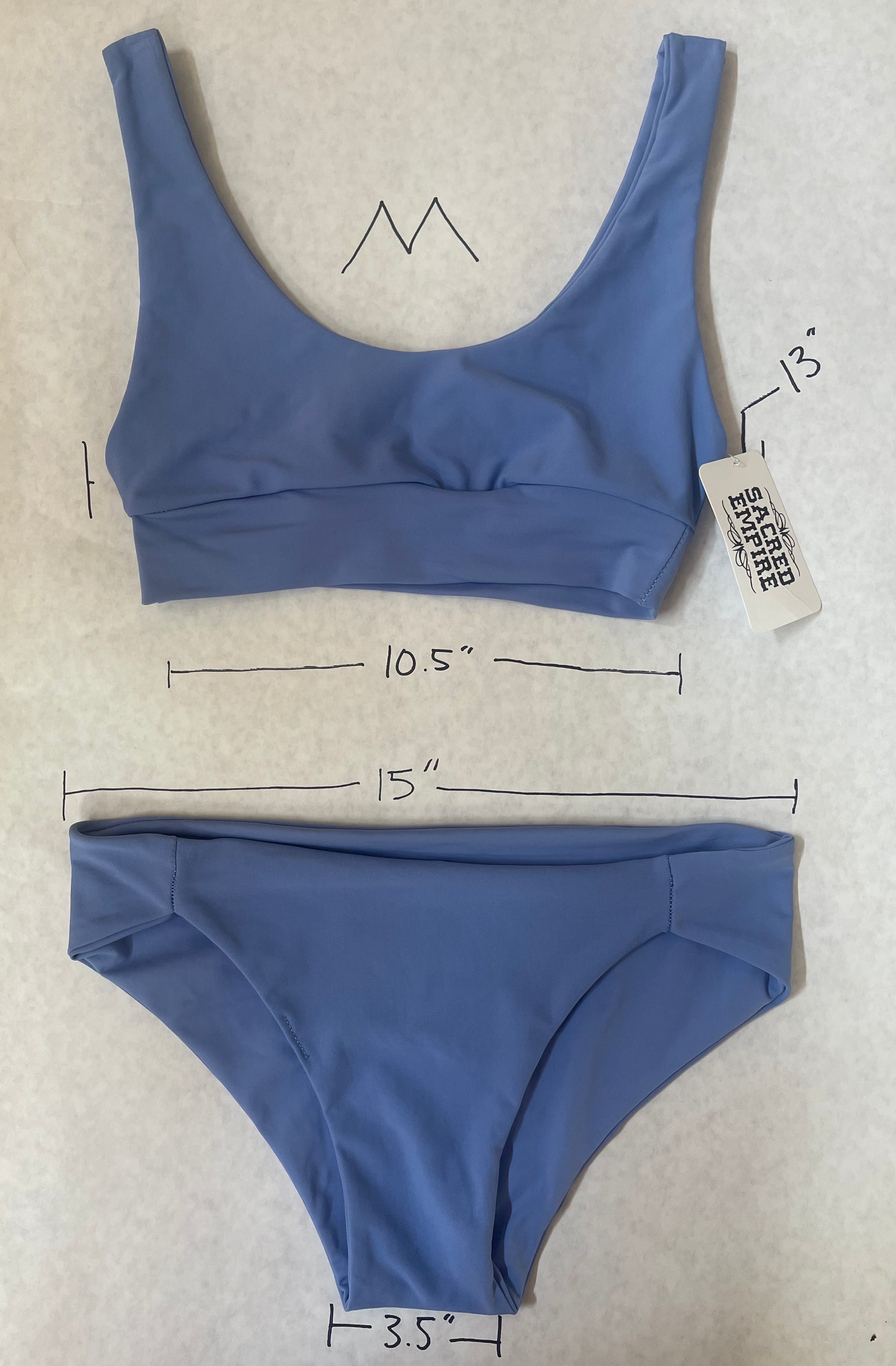 For size reference, you may also compare the measurements of your personal swimwear laying flat, to the measurements shown in the photos.