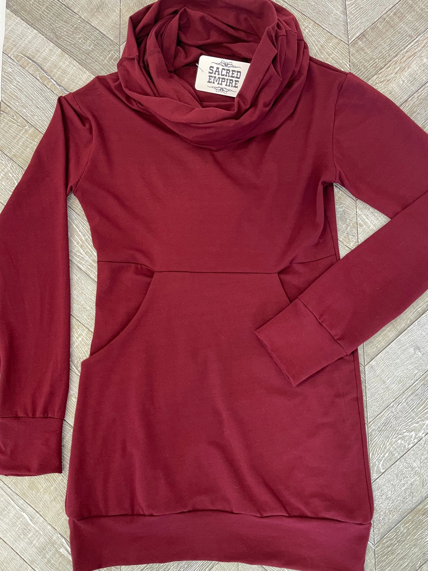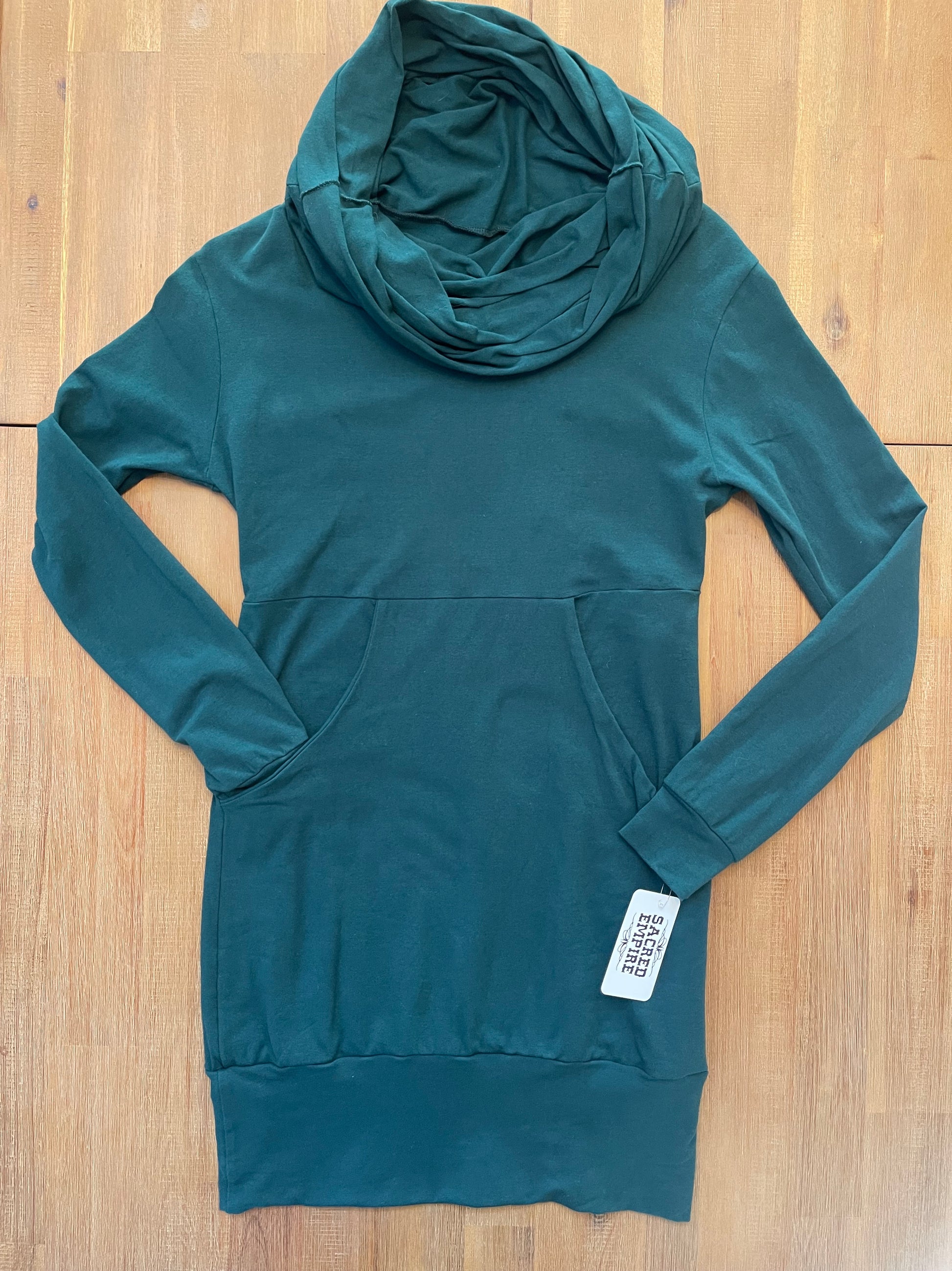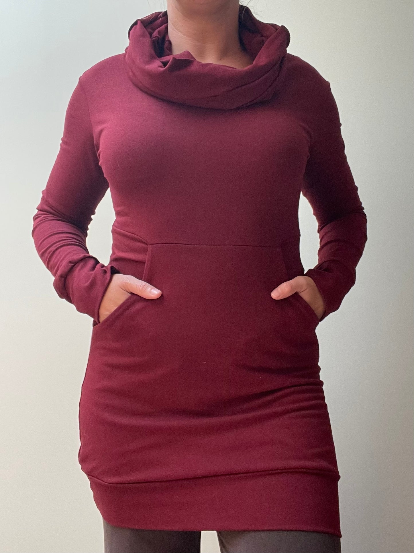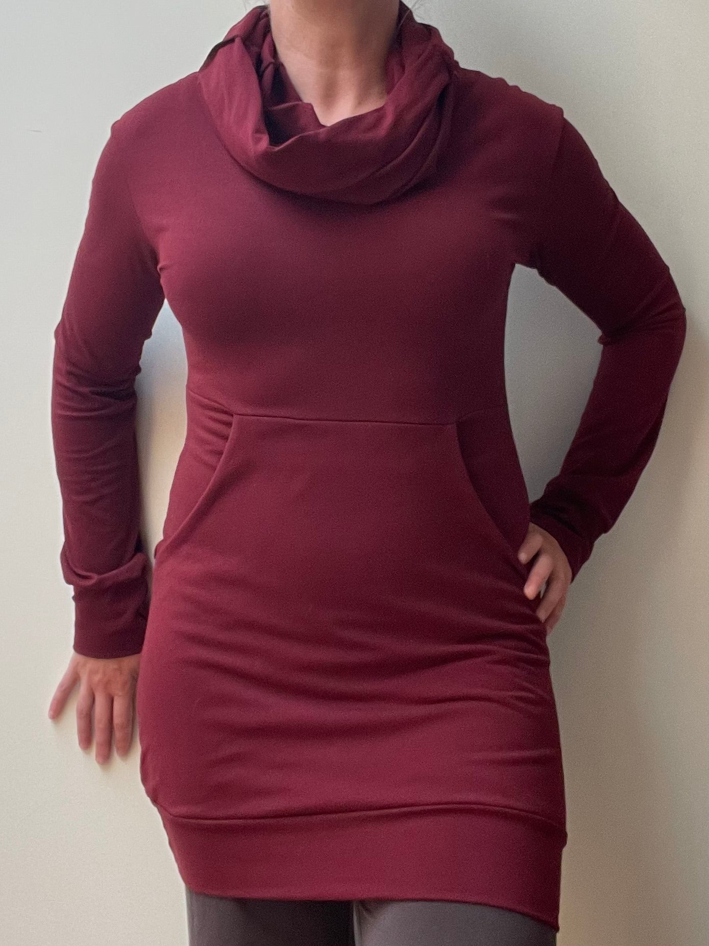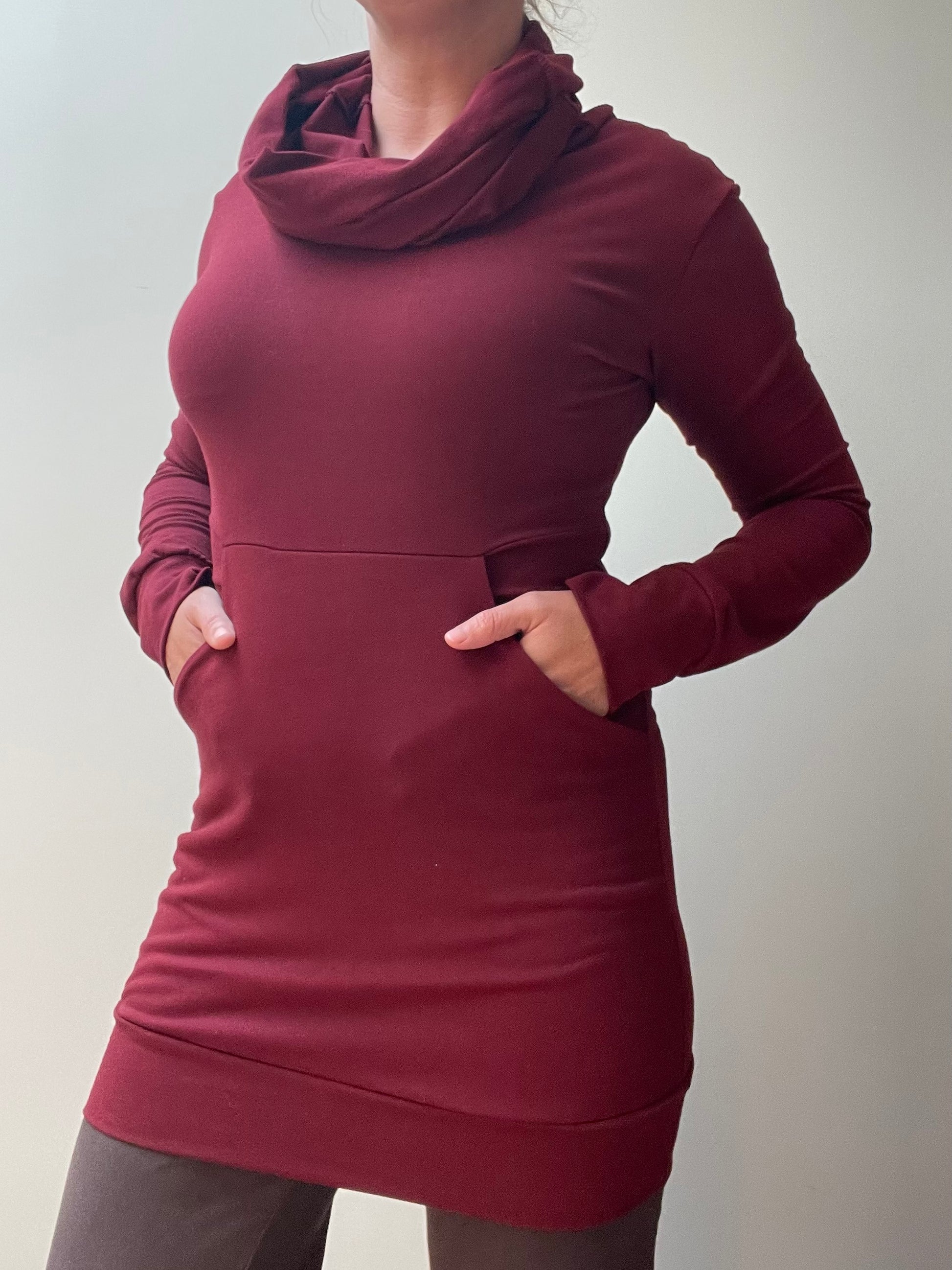 so comfy and flattering. Great with leggings. The front panel features a huge front pocket to stash all the things. It also is 3 layers thick, so it’s really flattering in the tummy area.